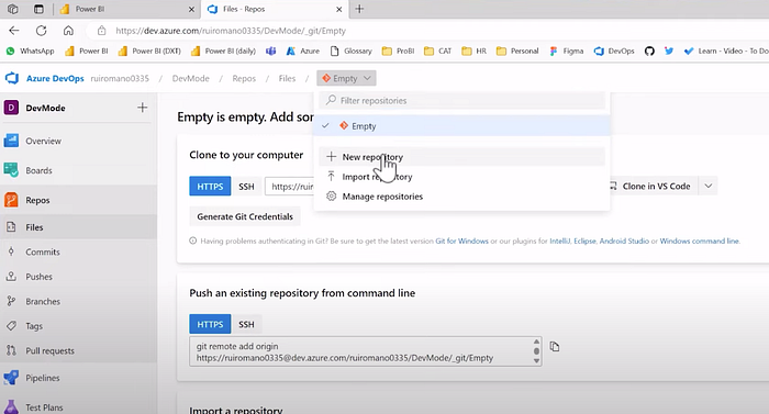 Now, to enable collaboration, you need to use Azure DevOps. You can go to Azure DevOps and you can create a new repo.