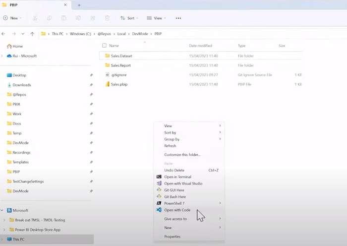 You can initialize a Git repo and enable Version Control and collaboration with other developers. You can do that using Visual Studio Code. From the Power BI project folder, you can open Visual Studio Code and initialize and you’ll get a repo.