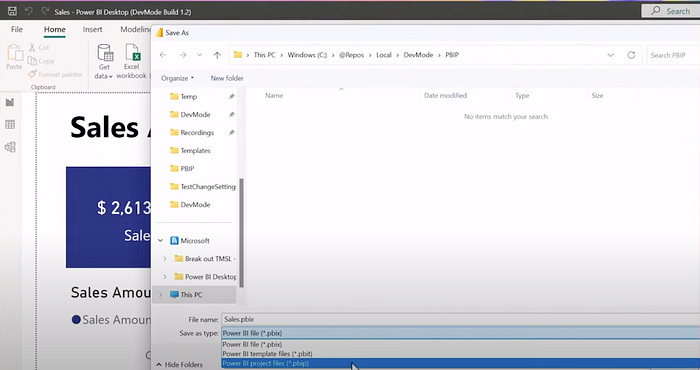 Now, with Power BI Desktop, you not only have the option to save your work as a single PBIX file, but you can also save it as a Power BI project (.PBIP).